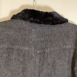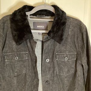 Mexx Women's Black Denim Jean Jacket With Faux Fur Collar Size 14 Western Cowboy