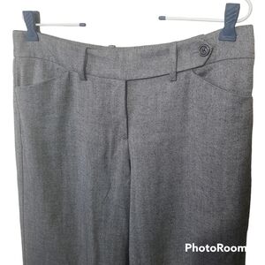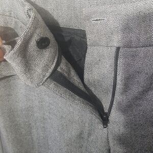 Mexx wool blend wide leg trouser pants. Sz US 8, UK 12. Zippered button fly with a button tab at waist. Belt loops. 4 pockets. Back pockets are still sewn shut. Lined half way down. Machine washable. 35% wool, 33% viscose, 32% polyester. Lining 100% acetate. Approximate flat lay measurements: waist 16", rise 9 3/4", inseam 32", leg opening 11". Smoke free home. Last photo shows a couple pinholes in lining at crotch area.