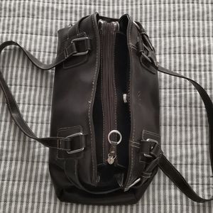 Mexx hand/shoulder bag with two side snap closures on each side along with a main zipper in the center. The straps are a little frayed but still has alot of life.