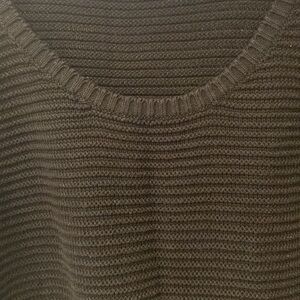 This oversize ladies knit top is in good condition with minimal wear and a tiny stitch flaw on front and a small snag on back. See photos for measurements and condition.