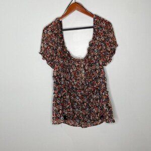 Mi Ami Women Tyler Floral Sheer Smocked Blouse Pluz Size 2X