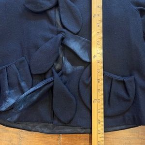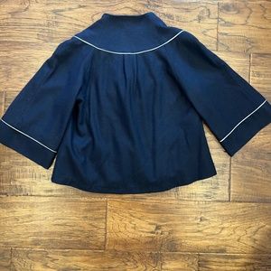Mia Melon womens short navy coat. Size 4/small. Super cute navy coat with white piping. two pockets at front. short, boxy cut. Made in Canada. 50% wool, 50% polyester. great condition. Approximately 20.5" long and 18" wide.