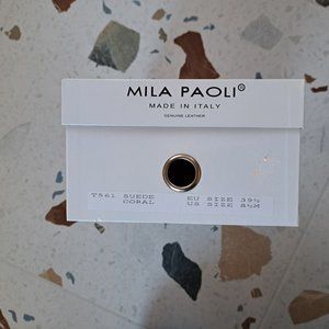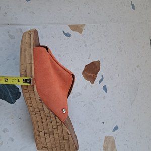 Beautiful orange soft suede Mia Paoli sandals with cork sole.