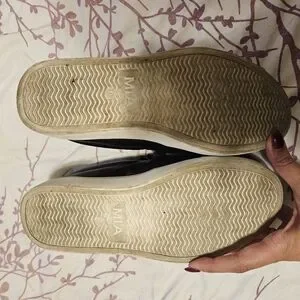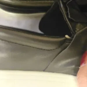 a few flaws shown in the photos, which does not reflect wearing the shoes.