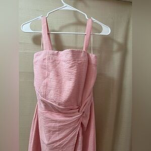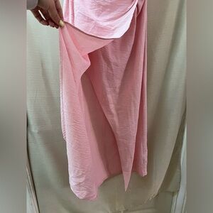 Chic pink high low dress with a sleeveless design. Features a stylish draped open front slit. Perfect for any occasion. Size medium.