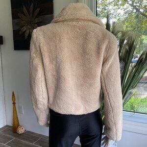 Miami Faux Fur Cropped Tan Jacket Sz Sm