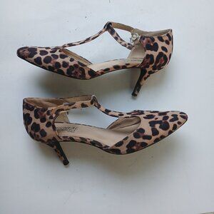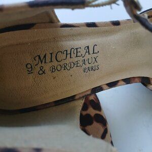 Michael & Bordeaux Paris Leopard Print Heels Ankle T-Strap Shoes Size 9
