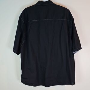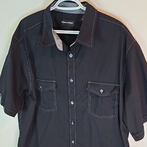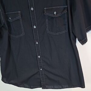 Classic black shirt with button-down design. Features dual chest pockets. Ideal for casual outings.