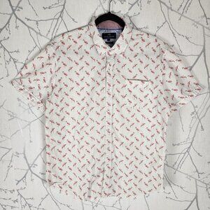 Michael Brandon Flamingo Print Cotton Slim Fit Short Sleeve Shirt