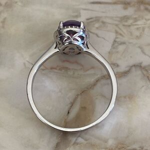 The central amethyst, February's birthstone, makes this ring an ideal gift for those born in February. Its classic halo design creates a piece that's both timeless and personal.