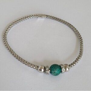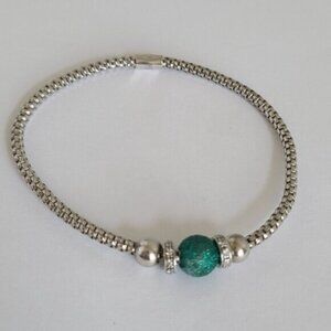 Michael Hill Sterling Silver Mesh Stretchy Green Bead Crystal Bracelet