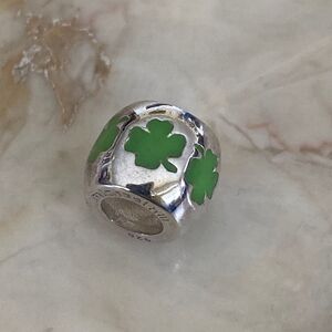 Lovely good luck charm! Sterling silver Michael Hill charm bracelet bead, compatible with Pandora, featuring a green enamel good luck shamrock ☘️