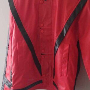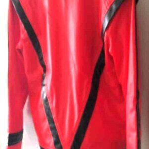 Michael Jackson Thriller Jacket size XS, See pic for measurements of jacket, Red leather like pants, size 29 waist, Size 7 womens pull on black loafers, white sequin glove