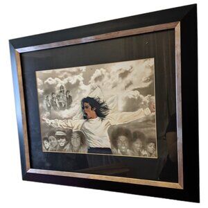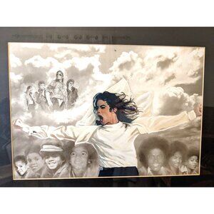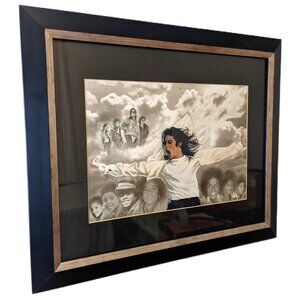 Lovely watercolor art print of Michael Jackson throughout his life! This framed print is in excellent condition.