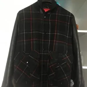 Men’s Michael Jordan wool winter jacket with real leather sleeves in excellent condition