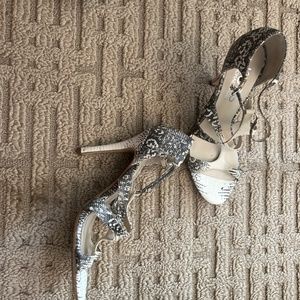 Beautiful black and white Michael Korr 9.5 3” Snake Skin Sandal worn once