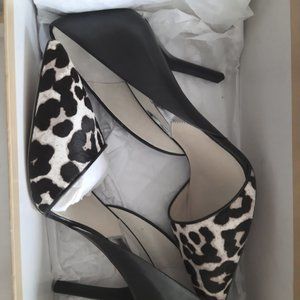 Brand New - Black & White printed haircalf stylish high heels - 7 B