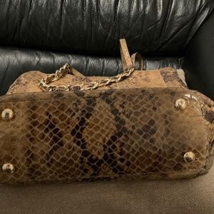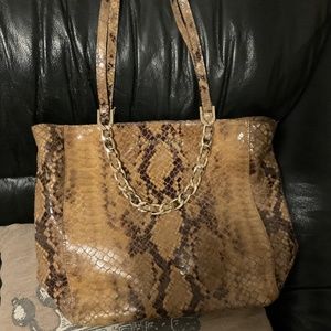Authentic MK animal print leather shoulder bag with attached gold chain strap