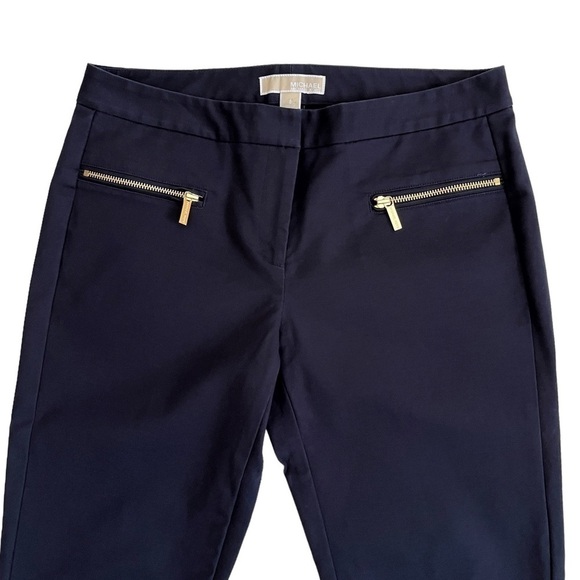 Michael Kors ankle pants with gold coloured front and back pocket zippers, back faux pockets.
