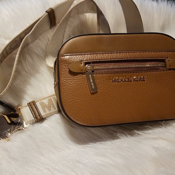 Pebbled Leather Michael Kors waist bag with cream and tan fabric strap/belt.