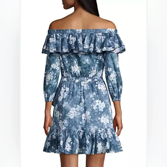 Michael Kors Bare Shoulder Ruffle Mini Dress