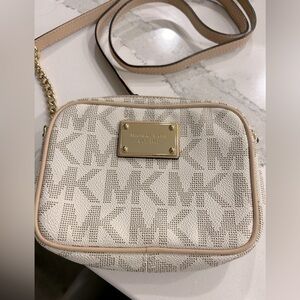 Michael Kors Beige MK Logo Jet Set Crossbody small compact bag.