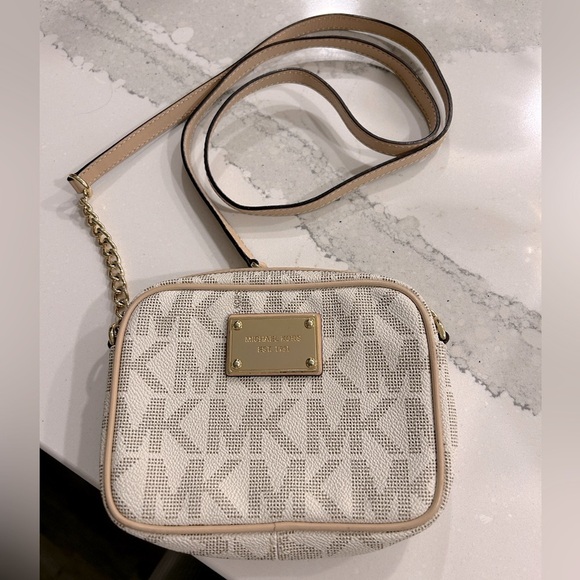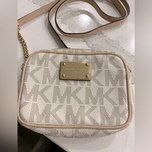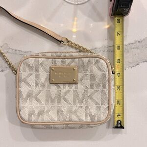 Michael Kors Beige MK Logo Jet Set Crossbody small compact bag.