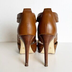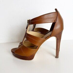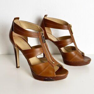 Michael Kors Berkeley T-Strap zipper platform heels tan leather size 7.5