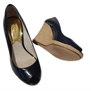 Chic black espadrille wedges. Peep-toe design. Perfect for any occasion.