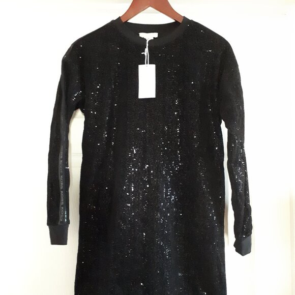 Beautiful Michael Kors Top/Tunic in size Medium. Top has round neckline, Michael Korres name down each sleeve. Sleeve and Hem have lovely banding. Top is subtley sparkly depending on the light you are in and your movements. Soft lining. Elastane, polyamide, viscose blend. New with tags. Measurements in inches approx. as follows: