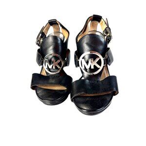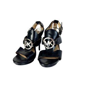 Michael Kors Black Leather Logo Heels | MK Platform Sandals Size 6