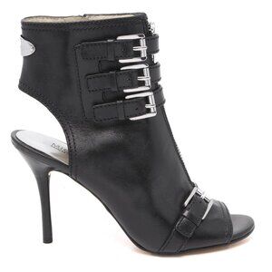 Michael Kors Black Leather Peep Toe Ankle Booties Shooties Zip Stiletto Goth