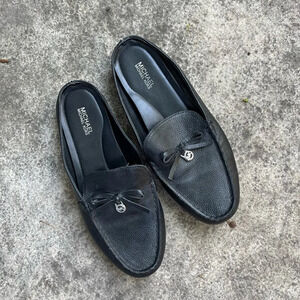 Michael Kors Black Leather Slide Loafer Mules Shoes, Size 7