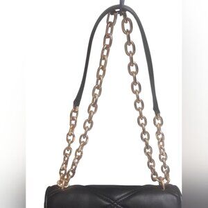 This stylish black quilted shoulder bag features a chic chain strap and a sleek design. Perfect for any occasion, it adds a touch of elegance to your outfit.