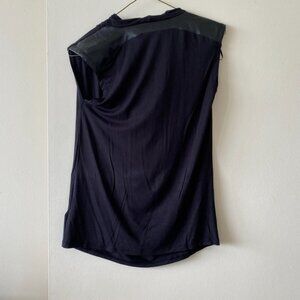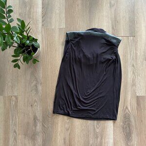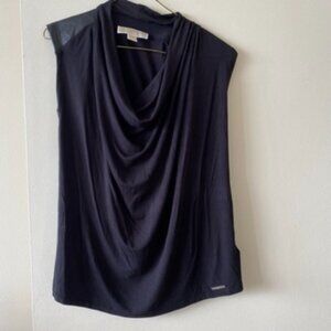 Michael Kors Black Sleeveless Cowl Neck Blouse with Leather Shoulder Detail