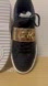 Elegant black sneakers with bold gold detailing. Perfect for casual wear.