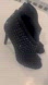 Chic black ankle boots with bold crystal stud accents. Ideal for a stylish look.
