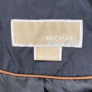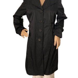 Step out in effortless style with this chic black trench coat by Michael Kors — a modern classic designed for the sophisticated wardrobe. Crafted from a soft, durable cotton blend, this versatile piece offers just the right balance of structure and comfort, perfect for transitional weather. Featuring a sleek button-down front, notched collar, and functional front pockets, the design is both practical and polished. Signature Michael Kors-engraved buttons add a touch of designer detail, while the faux half belt with button accents at the back gives a flattering, tailored silhouette. A back vent slit ensures ease of movement, and the length — hitting just above the knee — makes it ideal for pairing with everything from dresses to denim. Whether you're heading to the office or out for an evening stroll, this trench coat is your go-to outerwear for timeless sophistication with a modern twist.