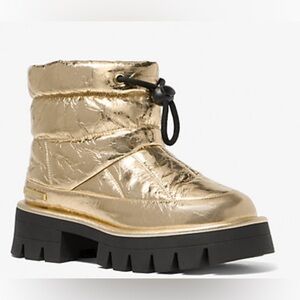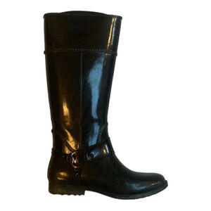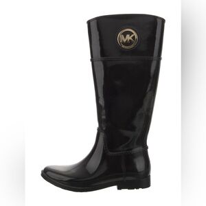 Stylish Michael Kors rain boots. Features iconic MK pattern. Durable and chic design.