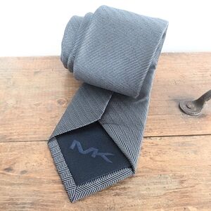 Elegant black and gray tie by Michael Kors. Features a subtle herringbone pattern. Perfect for formal occasions.