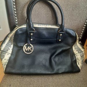 Michael Kors Black and Snakeskin Leather Bowling Bag Purse MK Logo