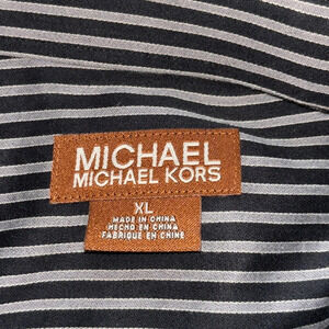 Michael Kors Black and White Striped Button Up Cotton Dress Shirt