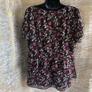 Michael Kors Black/Red And White Floral Print Layered Blouse Size L