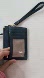 Stylish blue leather card holder with wrist strap. Features gold-tone hardware and multiple card slots. also a key chain