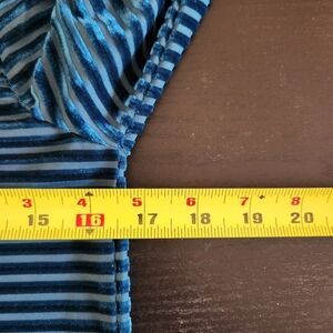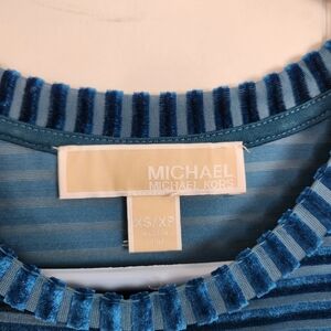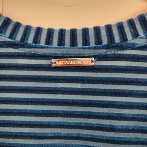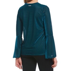 Michael Kors Blue Long Sleeve Striped Shirt Teal Blue Bell Sleeves Velour Velvet