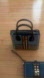 Elegant blue satchel with striking gold accents. Includes matching wallet. Ideal for any occasion.
