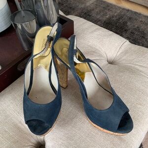 Michael Kors Blue Suede & Cork Sandals