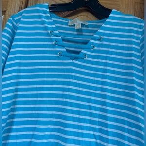 Michael Kors Blue and White Short Sleeve Plus Size T-Shirt XL