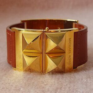 - "Michael Kors" is etched on the outside of the bracelet on one of the metal panels