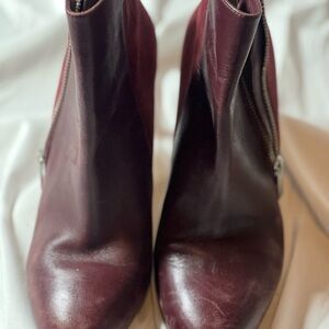 These Michael Kors ankle booties in a rich brown hue are crafted from a soft suede-like material, offering a luxurious feel. Featuring a sleek pointed toe and a high heel, they provide an elegant silhouette perfect for any occasion. A convenient side zipper ensures easy wearability, making them a stylish and practical choice.